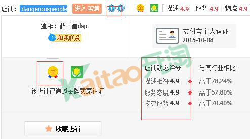 从图片上可以看到,开店历史虽然不是很久,但是已经是两皇冠的金牌卖家,店铺DSR动态评分远远高出同行的水平!