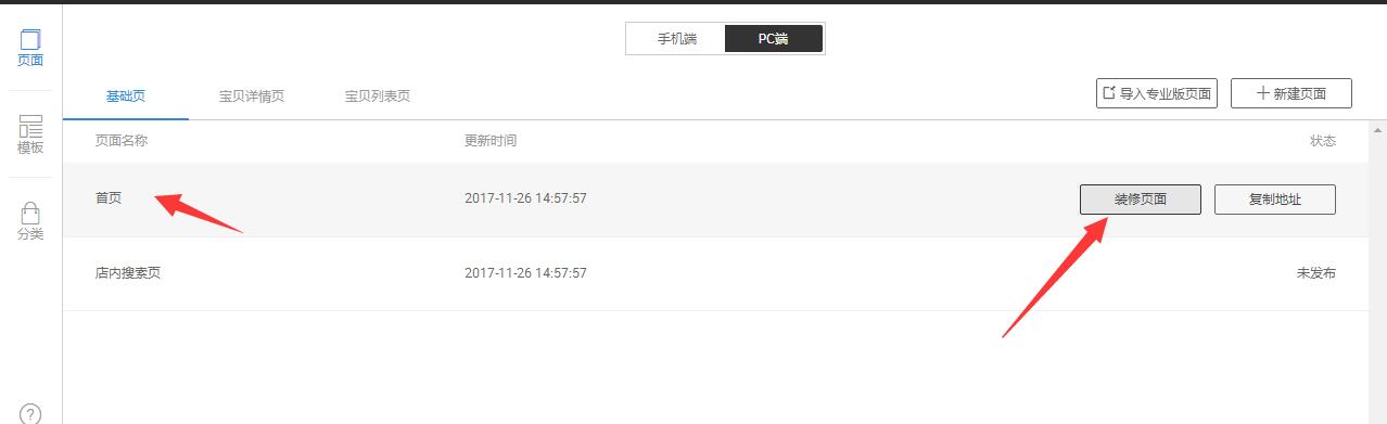 第二步:点击PC端,进入PC端装修页面。