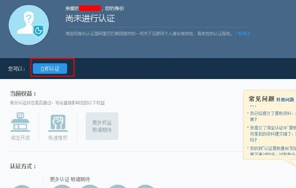 点击立即认证后,您会进入淘宝网身份认证的页面,请点击该页面中的立即认证,如图所示:
