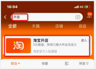 请点击【免费开店】或手机淘宝搜索【开店】进入淘宝开店入口