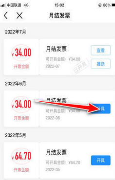 4、这里就以月结发票为例,进入月结发票,点击右侧的开具;